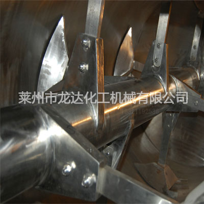 犁刀混合機(jī)由圓筒體、傳動(dòng)機(jī)構(gòu)、犁刀、飛刀四部組成;工作時(shí),犁刀做圓周運(yùn)動(dòng),物料被犁刀刀面分流成兩個(gè)方向形成雙向物料流,與兩側(cè)犁刀分流過(guò)來(lái)的物料相互交叉形成對(duì)流,當(dāng)物料流經(jīng)高速飛刀時(shí)又被高速飛刀葉片剪切和拋灑,從而在較短時(shí)間內(nèi)達(dá)到均勻混合。本機(jī)的混合精度高,混合時(shí)不產(chǎn)生離析,尤其對(duì)于容易團(tuán)聚的物料,可以起到解聚和打散的作用。